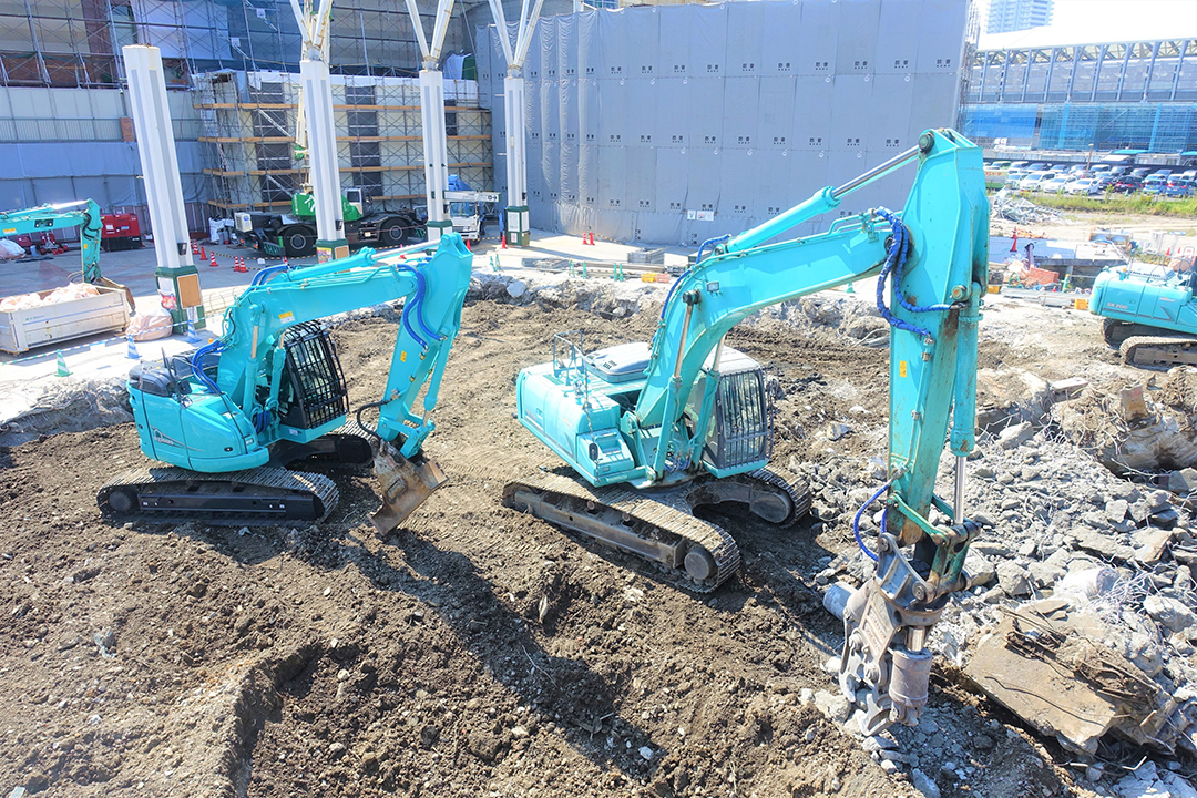 自社で解体重機を所有し、解体工事に必要な足場工事も自社で行うので、分離発注する事なく一貫して請負う事により、低コストで安全、安心に施工を行える事が弊社の強みです。